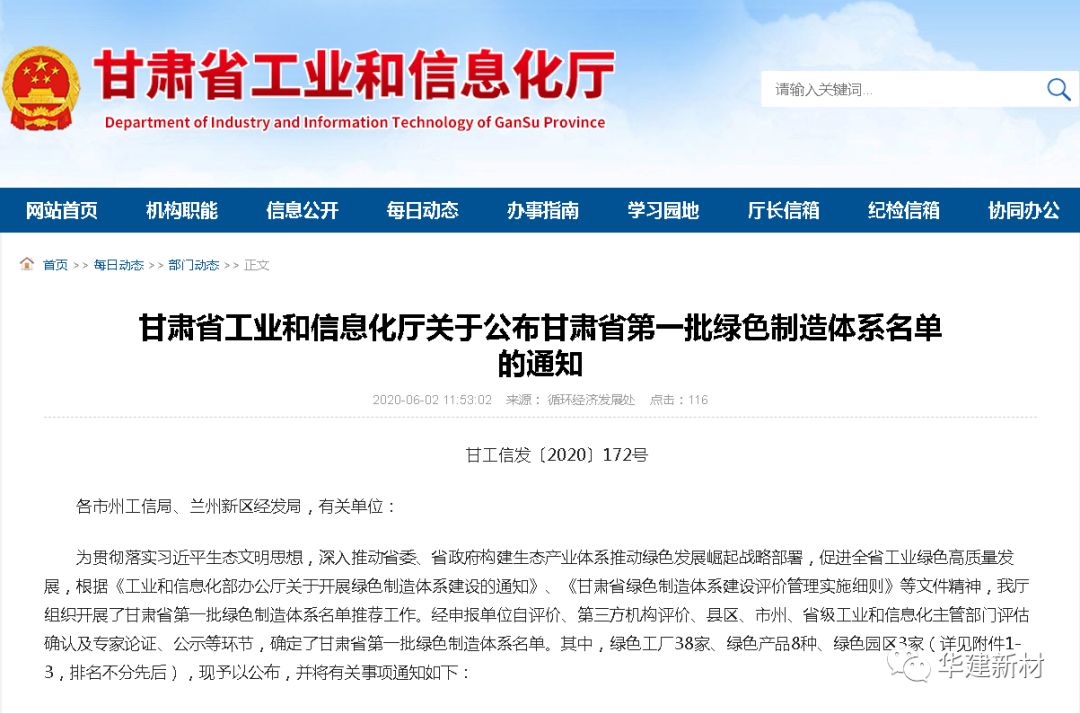 甘肃K8凯发新材料股份有限公司入选甘肃省第一批绿色工厂